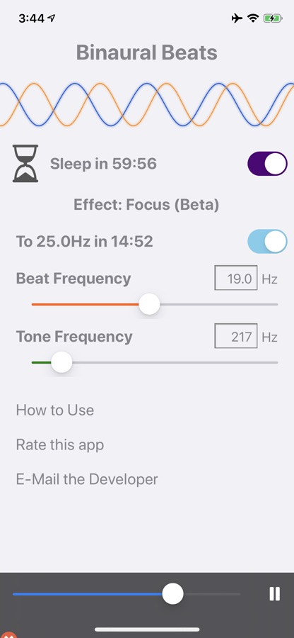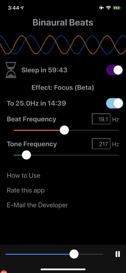 This is a simple, clean app for binaural beats that won’t drain your battery or interfere with your music, audiobooks, etc.
