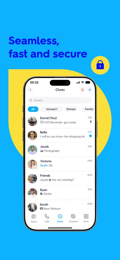 HD-звонки: Оставайтесь на связи с высококачественными голосовыми и видеозвонками, как индивидуальными, так и групповыми.