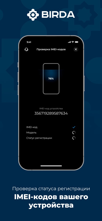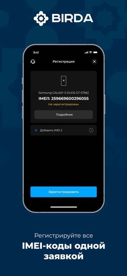 BIRDA — это быстрый способ зарегистрировать IMEI-код вашего телефона. Благодаря идентификации данных пользователя по лицу и сверке с паспортными данными, процесс регистрации стал простым, но надежным. Вам не нужно идти в офис регистратора или в почтовое отделение. Все можно сделать, не выходя из дома.