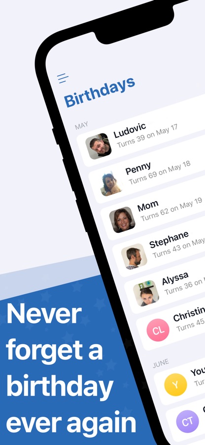 • Stop forgetting your friends and family’s birthdays