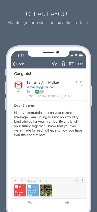 Clean Navigation—Beautiful, flat design focuses on what is important—email.