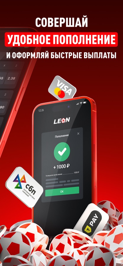 БК Леон позволяет быстро и безопасно пополнить счет или вывести деньги с помощью банковской карты, СПБ или через мобильную связь.