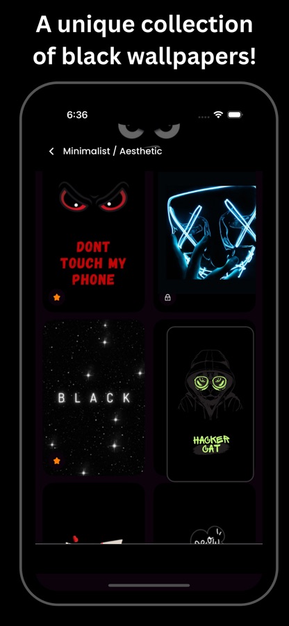 This app offers a unique collection of black wallpapers with original backgrounds created by our team and reused backgrounds from other creators, It offers categories such as: abstract, minimalist, scary, animals, nature, quotes, aesthetics, anime and much more..
