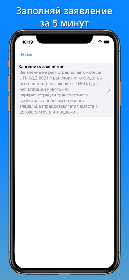 — Заявление на регистрацию автомобиля в ГИБДД. (Данное заявление необходимо предоставить в ГИБДД для регистрации или переоформления автомобиля на другого владельца. Его также нередко называют актом осмотра автомобиля. Именно в нём инспектор ГИБДД делает соответствующие отметки при осмотре транспортного средства. С помощью данного приложения заполнить бланк заявления на регистрацию автомобиля 2021 не составит особого труда. Наше приложение предоставляет Вам уникальную возможность самостоятельно подготовить документ за несколько минут. Потребуется заполнить всего лишь несколько полей готового бланка, на основании которых приложение сформирует ваше готовое заявление, которое только останется распечатать.)
