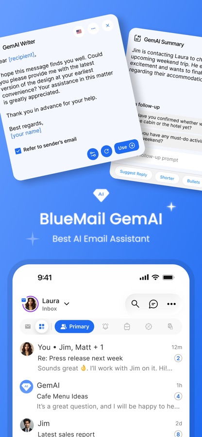 With a powerful unified interface experience packaged in an intuitive and easy to use design, BlueMail provides a top-notch email service for all your email accounts.