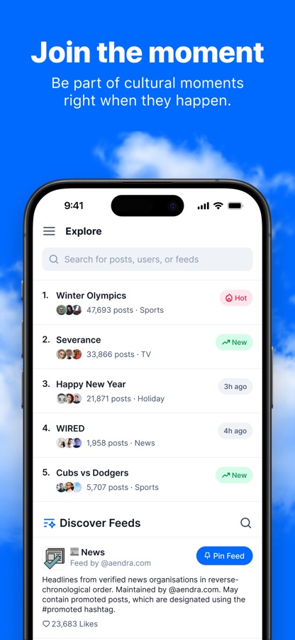 Choose from thousands of community-built feeds covering news, art, pets, science, fandom, investing, culture, and everything in between. Stay updated with people you care about in your Following feed, or dive into new perspectives and trends in Discover.