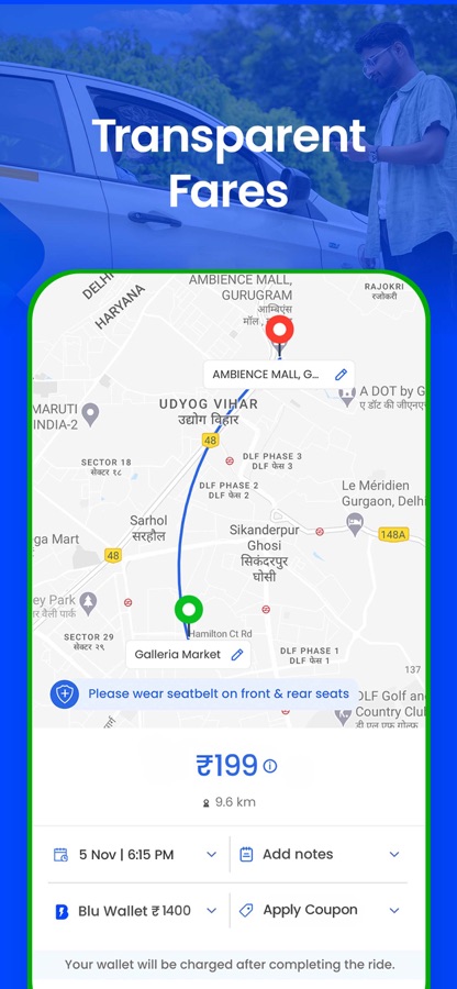 • Scheduled cabs: Travelling to the office every day? Schedule your BluSmart in advance & enjoy a seamless experience.