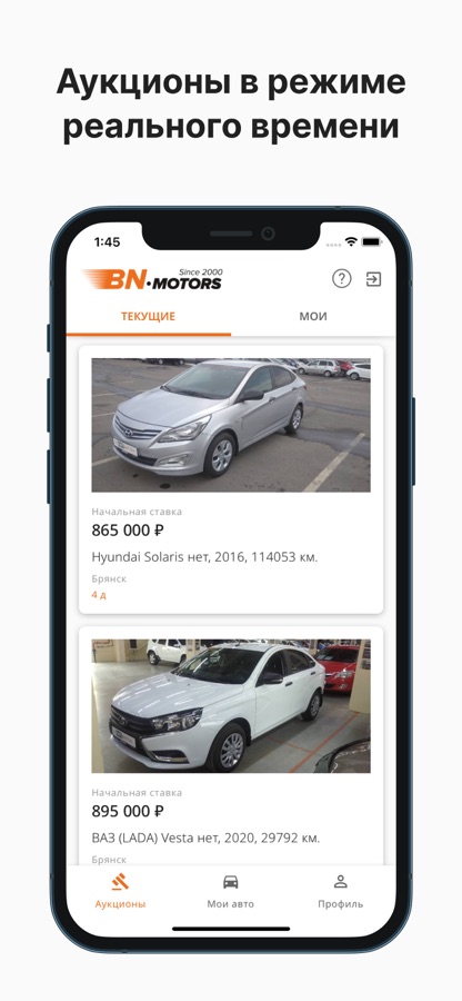 Приложение по продаже на аукционе автомобилей от компании БН Моторс