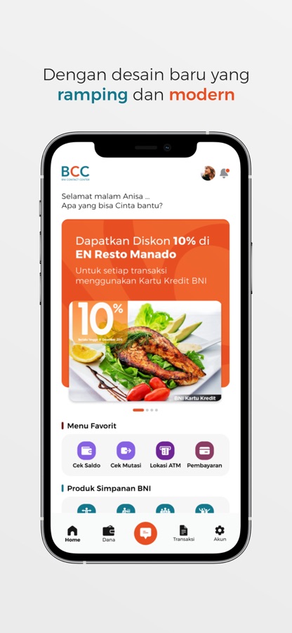 Aplikasi BNI Contact Center pertama berbasis Artificial Intelligence dan menggunakan perintah suara yang dilayani oleh Virtual Assistant.