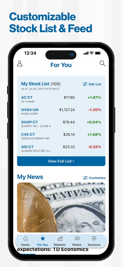 2. Customizable Stock List & Feed – Keep a close watch on the performance of the stocks and financial news that matter most to you.