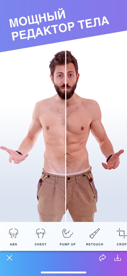 Body Tune Men — это простое в использовании приложение, которое в считанные секунды сделает ваше тело идеальным! Станьте лучшей версией себя с волшебными преображениями!