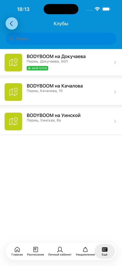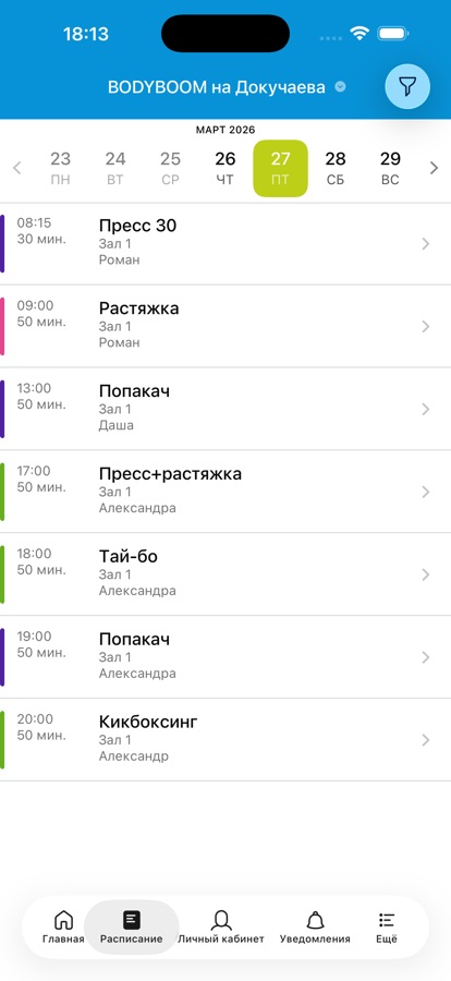 BODYBOOM — мобильное приложение сети фитнес-клубов.