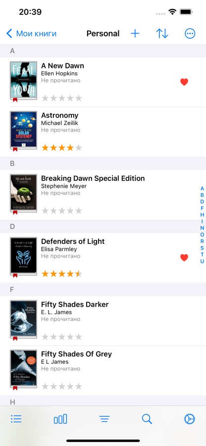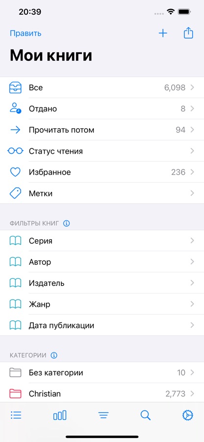 • Статус прочтения — фильтруйте свои книги по статусу прочтения.