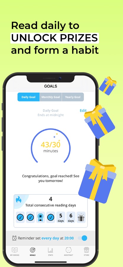 — Set daily reminders to keep you motivated to achieve your reading goals