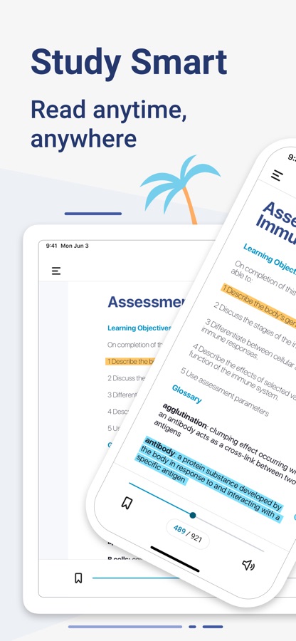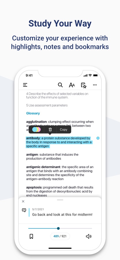 • Customize highlighters and add notes for a rich study experience.