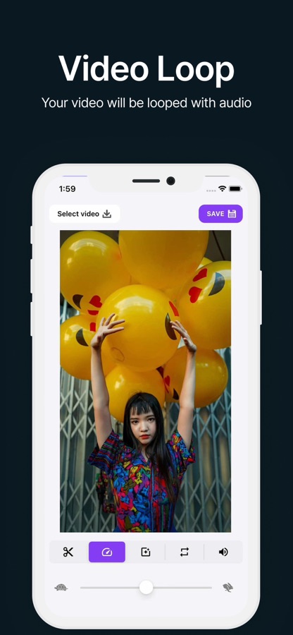 Loop any Video with or without audio – Import a video and turn it into a smooth, back-and-forth boomerang with just one tap.