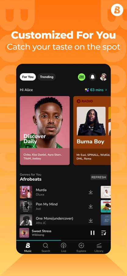 Boomplay knows your music taste better than anyone. You will be surprised by what new music and songs our recommendations will help you discover.