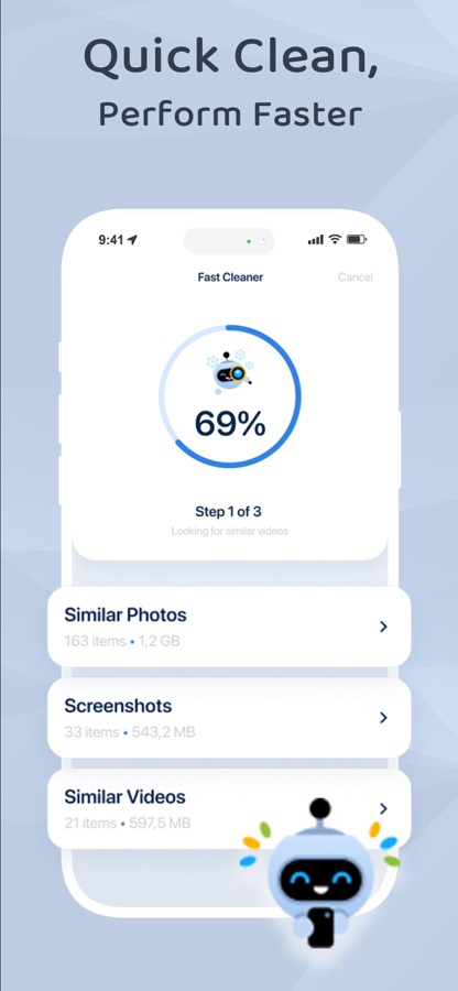 Boost Cleaner помогает организовать и управлять контентом, хранящимся на вашем устройстве. Приложение позволяет просматривать и удалять повторяющиеся фотографии, объединять повторяющиеся контакты, управлять большими файлами и упорядочивать выбранный личный контент — все это обрабатывается локально на вашем устройстве.