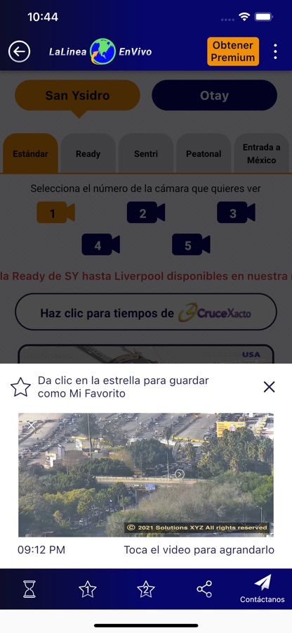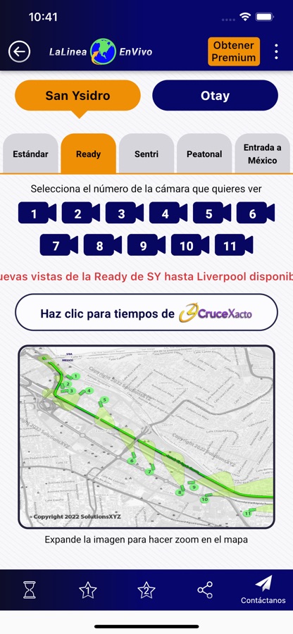 • 24/7 acceso a más de 40 videos de las garitas de San Ysidro y Otay Mesa: Estándar, Ready, Sentri, Entrada a México, y Peatonal