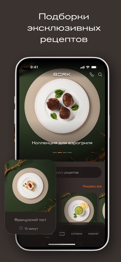 Приложение BORK — это онлайн-бутик с коллекцией техники и аксессуаров, авторскими рецептами от бренд-шефа и чатом с Персональным консультантом.