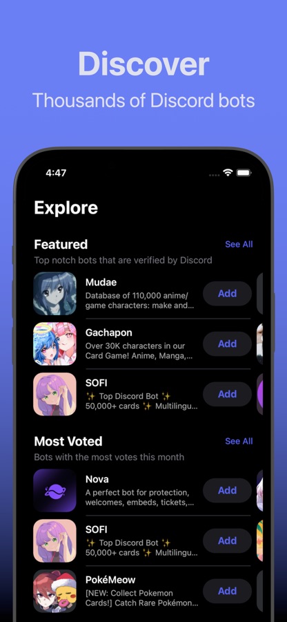 Download now and discover why thousands of Discord communities trust us to find their perfect bots!