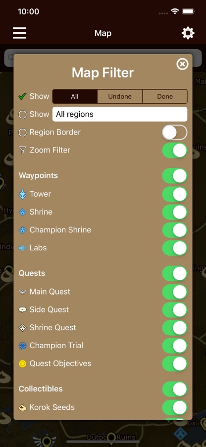Breath Companion is the ultimate interactive guide for The Legend of Zelda: Breath of the Wild and Hyrule Warriors: Age of Calamity. Explore Hyrule with a fully featured offline map, powerful checklists, and detailed info databases to help you complete the game 100%.