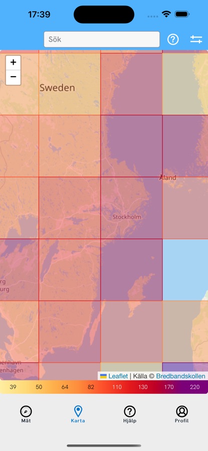 När du mäter mobilt internet kan du också välja att dela med dig av din mätningsposition. Bredbandskollen sammanställer sen dessa mätningar på en «surfkarta». Du kan när som helst ändra delningsinställningarna i din telefon.