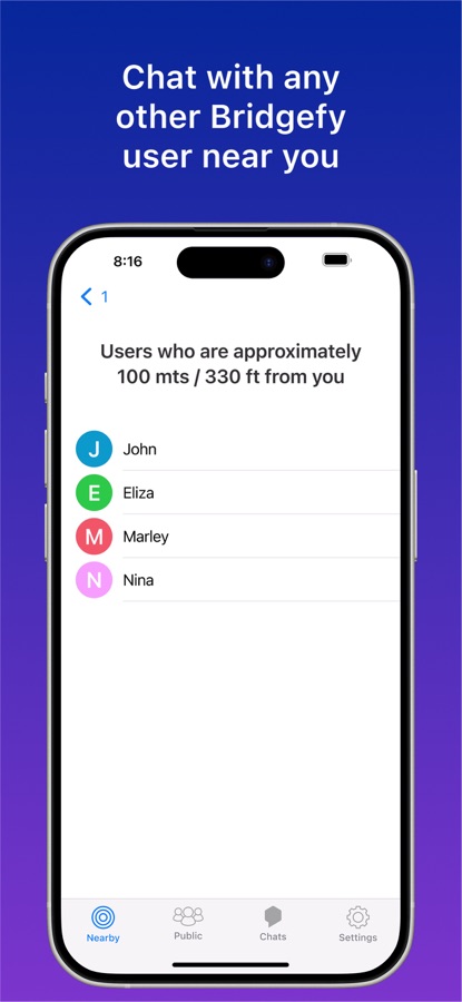 No Contacts Needed: You don’t need to add contacts—just start chatting with nearby Bridgefy users.