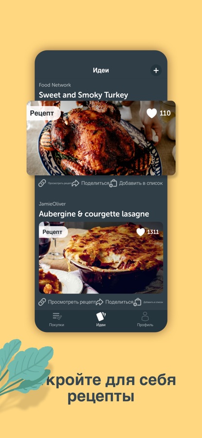 — Находите лучшие рецепты в ленте вдохновляющих идей, в том числе веганские рецепты, здоровые рецепты, фитнес-рецепты, рецепты для детей и так далее.