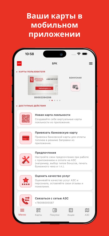 • Создавайте виртуальные карты сети АЗС БРК из приложения.