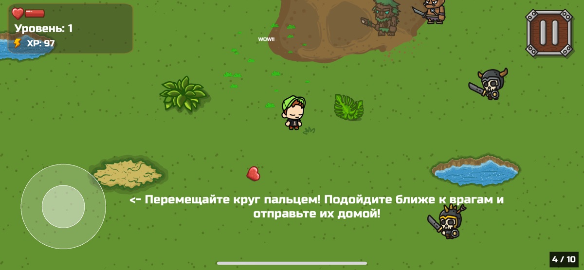 Управляй героем, перемещая палец по экрану! Подойди ближе к врагам и отправь их домой!