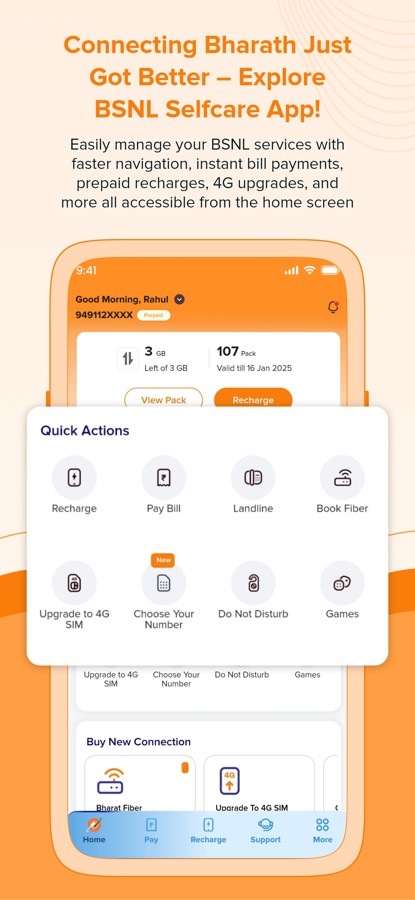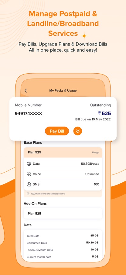 Manage all your BSNL services—Mobile, Landline, and FTTH—effortlessly in one place! With a new and improved UI, the app offers: