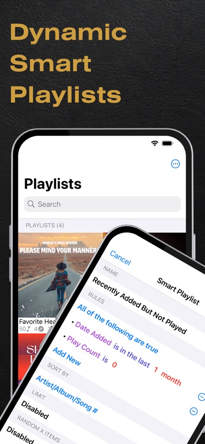 • Мощные плейлисты: Создавайте неограниченное количество умных плейлистов на основе правил, которые вы определяете, или импортируйте все свои существующие файлы плейлистов M3U/M3U8.