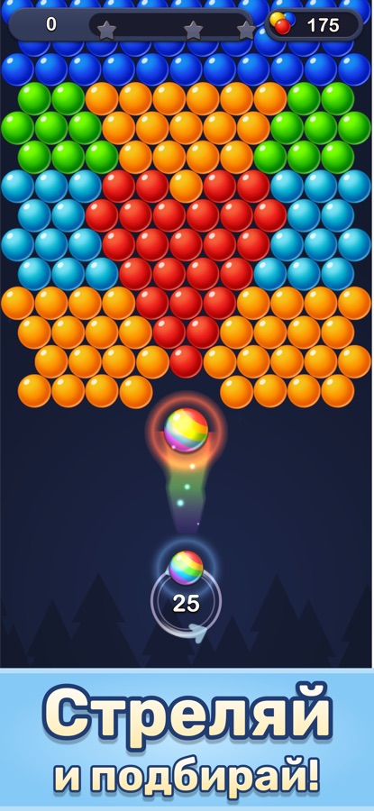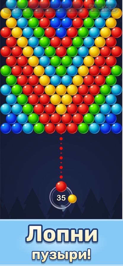 Собирайте в ряд 3 и более пузырей одного цвета, чтобы они лопнули!