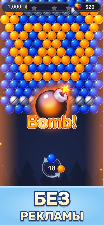 В Bubble Pop! — Бабл-шутер пазл отсутствует полноэкранная (межстраничная) реклама.