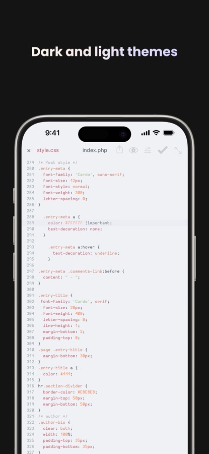 • Customizable fonts, font sizes, and over 300 dark and light themes