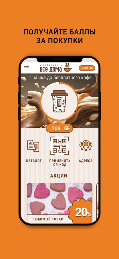 Приложение дает возможность получать скидки и накапливать баллы при каждой покупке. При покупке по QR-коду из приложения 5% стоимости товаров превращаются в баллы. Баллами можно оплачивать до 90% покупки. Каждый 7-ой кофе — за 1 рубль.