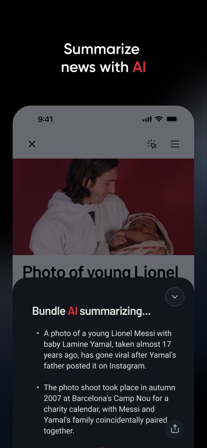• Save time by summarizing news – Utilize Bundle AI, the productive artificial intelligence developed by Bundle, to summarize news content with just one touch. Instead of reading the entire news, you can quickly get to the most important points.