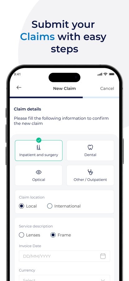 • قدم مطالباتك في خطوات سريعة وسهلة.