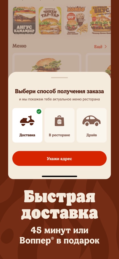 Выбирай удобный способ получения заказа: доставку, самовывоз или драйв.