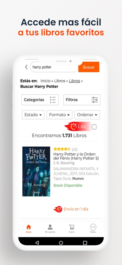 La App Buscalibre te permite acceder a todas las secciones del sitio web de Buscalibre.com desde la comodidad de tu celular.