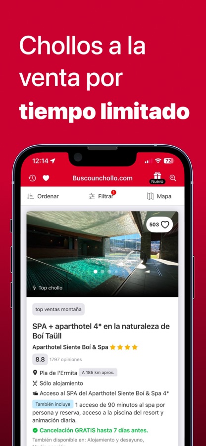 + ¡Novedad! CHOLLOS EXCLUSIVOS para usuarios registrados compradores. Si Ya has hecho una reserva con nosotros, regístrate en la app como usuario con el mismo e-mail y podrás acceder a chollos privados exclusivos.
