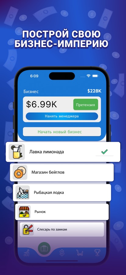 Открой свою компанию, прокачивай бизнесы, нанимай менеджеров и наблюдай, как твои деньги растут даже в офлайне.