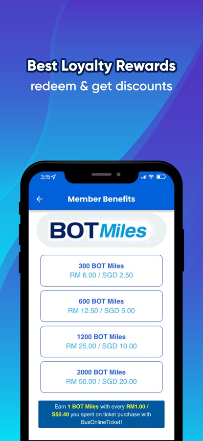 With every booking with BusOnlineTicket.com, members get to earn BOT Miles and redeem up to RM50 / SGD20 discount on their future booking. On top of that, members get to enjoy various member exclusive discounts.