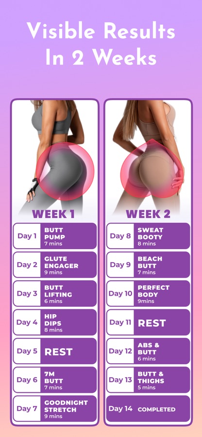 Эффективные тренировки: наши тренировки созданы сертифицированными профессионалами в области фитнеса, чтобы обеспечить максимальную эффективность каждой тренировки. Приготовьтесь к сочетанию приседаний, выпадов, становой тяги, мостика и многого другого — все это научно оптимизировано для формирования и тонуса ваших ягодиц.