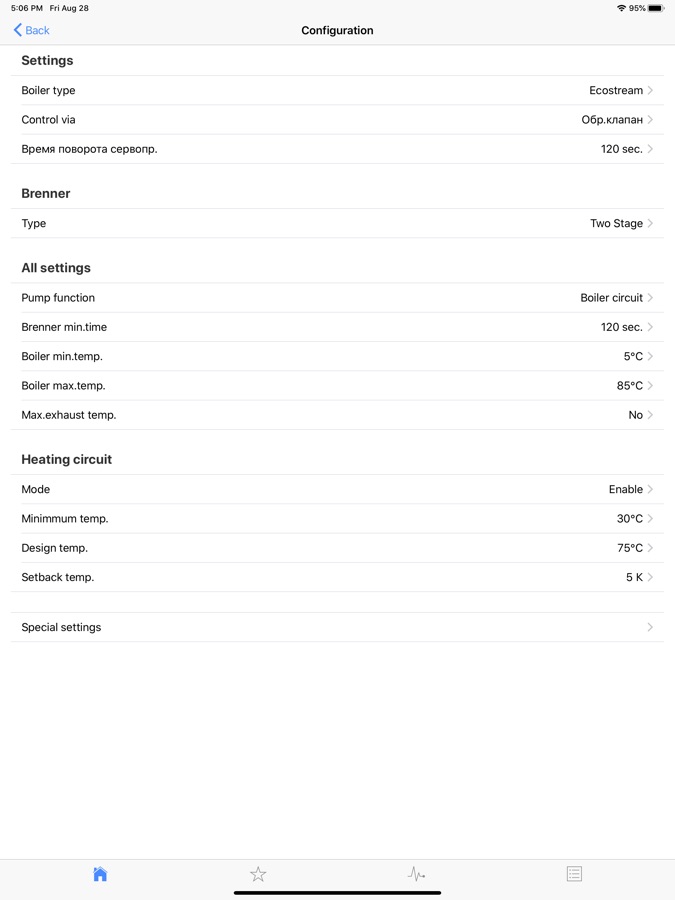 Сервер сбора данных подключается к системе управления Logamatic 4000 по шине ECO-BUS. Данные телеметрии передаются в приложение на мобильном устройстве.