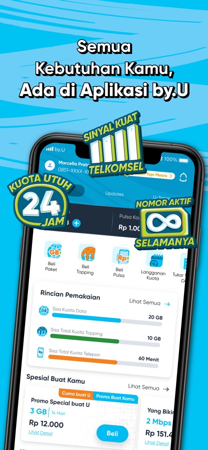 Dapetin berbagai promo seru, hadiah kuota spesial di monthiversary ke 3, 6, 9, dan 12 kamu, hadiah kuota ulang tahun 1 GB 3 hari, dan berbagai promo lainnya yang cuma bisa didapetin di aplikasi by.U