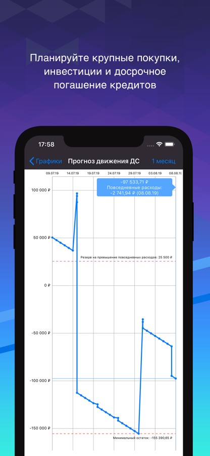 ваши данные не передаются в облако и не синхронизируются с другими устройствами. Вы можете дополнительно защитить ваш финансовый план пин-кодом или входом по Touch ID/Face ID.