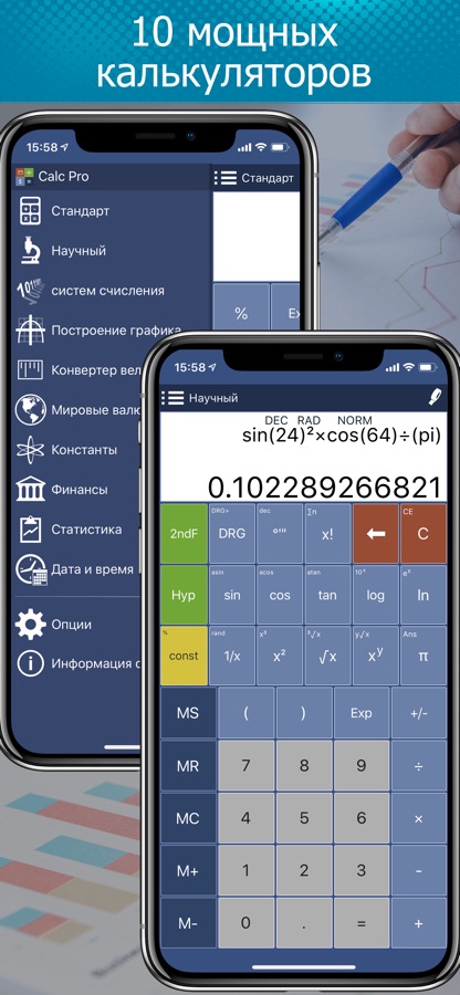 Ощутите мощь идеального мобильного калькулятора на вашем iPhone и iPhone Pro! Присоединяйтесь к миллионам довольных пользователей по всему миру, которые доверяют Calc Pro за его непревзойденную мощь, точность и продвинутые функции. Calc Pro является доверенным выбором студентов и профессионалов по всему миру. Это единственное приложение, которое может действительно заменить ваш карманный калькулятор. С десятью (10) мощными калькуляторами, десятью (10) финансовыми и восьмью (8) статистическими таблицами, у Calc Pro действительно есть калькулятор на любой случай. Независимо от того, проверяете ли вы последние курсы валют или преобразуете простые кулинарные измерения, Calc Pro делает решение даже самых сложных расчетов легким. Получите Calc Pro сейчас и ощутите мощь продвинутых расчетов на своих кончиках пальцев!