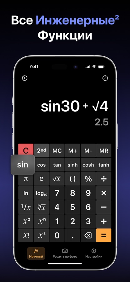 • Инженерный калькулятор. Используйте тригонометрические, экспоненциальные и логарифмические функции и многое другое.